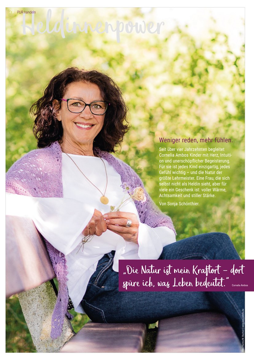 Seit über vier Jahrzehnten begleitet Cornelia Ambos Kinder mit Herz, Intuition und unerschöpflicher Begeisterung. Für sie ist jedes Kind einzigartig, jedes Gefühl wichtig – und die Natur der größte Lehrmeister. Von Sonja Schönthier.